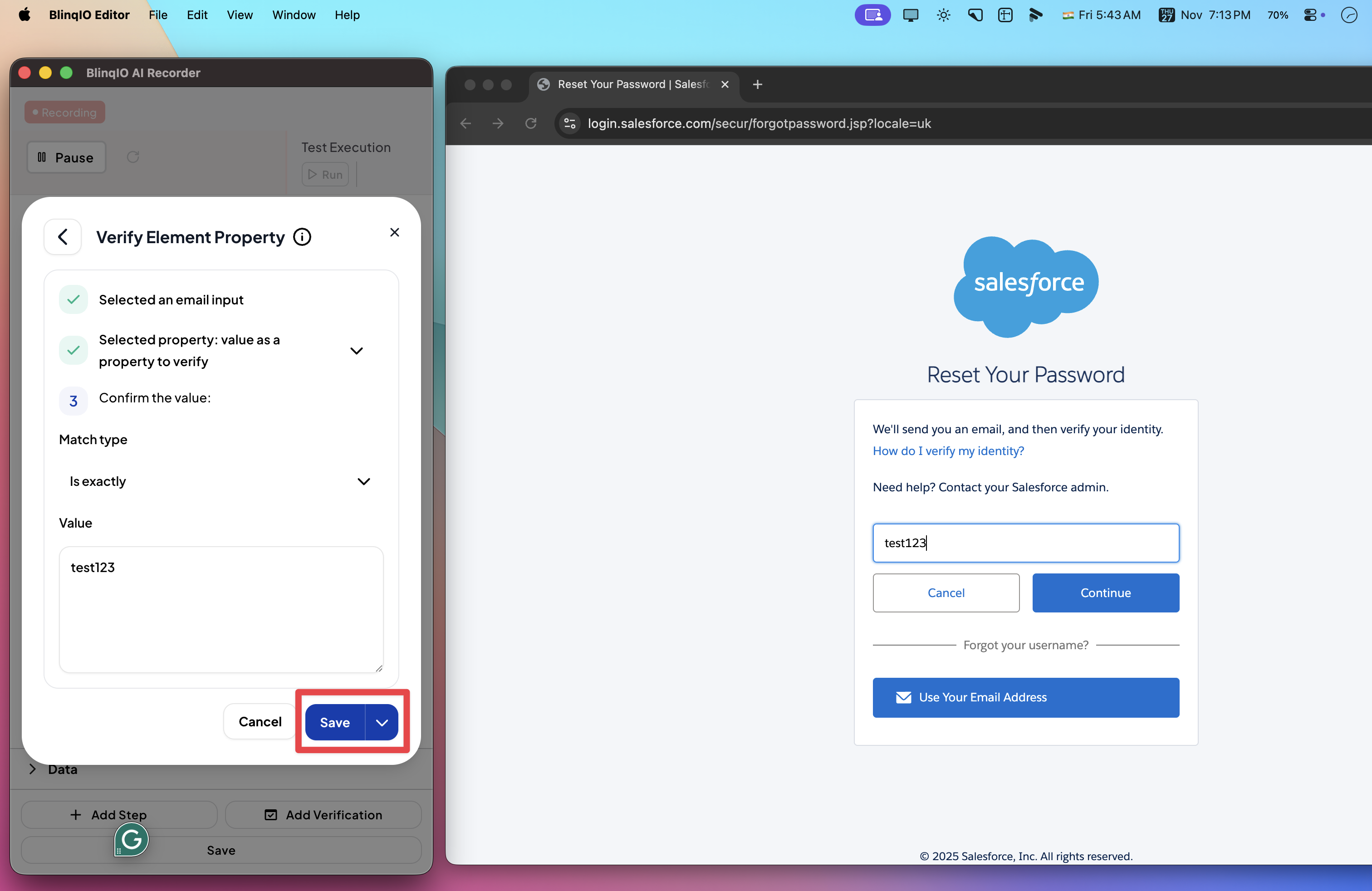After saving, the step appears in the Recorder: