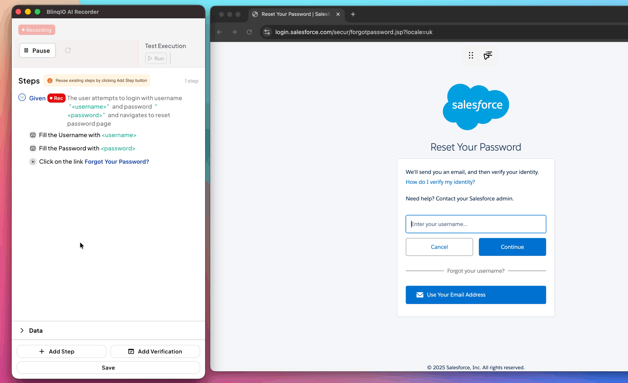 If needed, you can change the Gherkin step type of a recorded step by clicking on the step type text and selecting a new value from the dropdown menu.