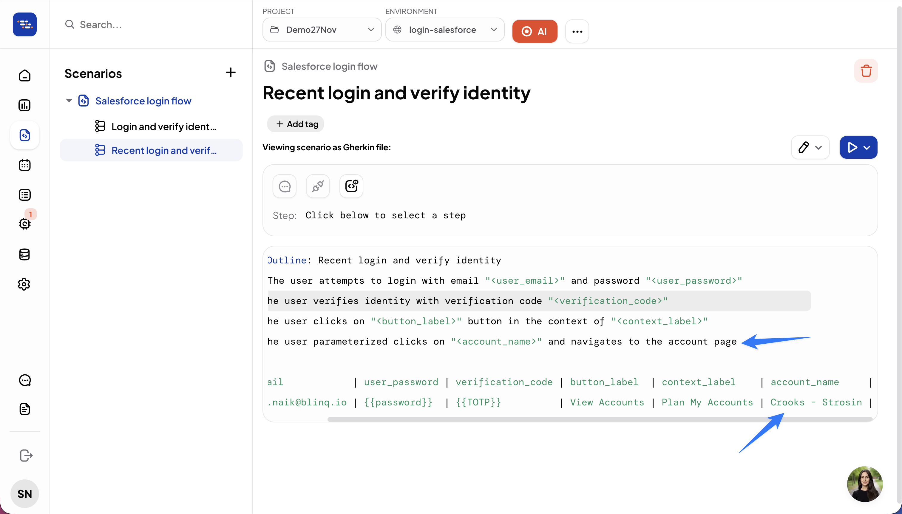Use parameterized clicks to keep your scenarios flexible. Instead of recording multiple steps, change a single parameter value to test different elements.
