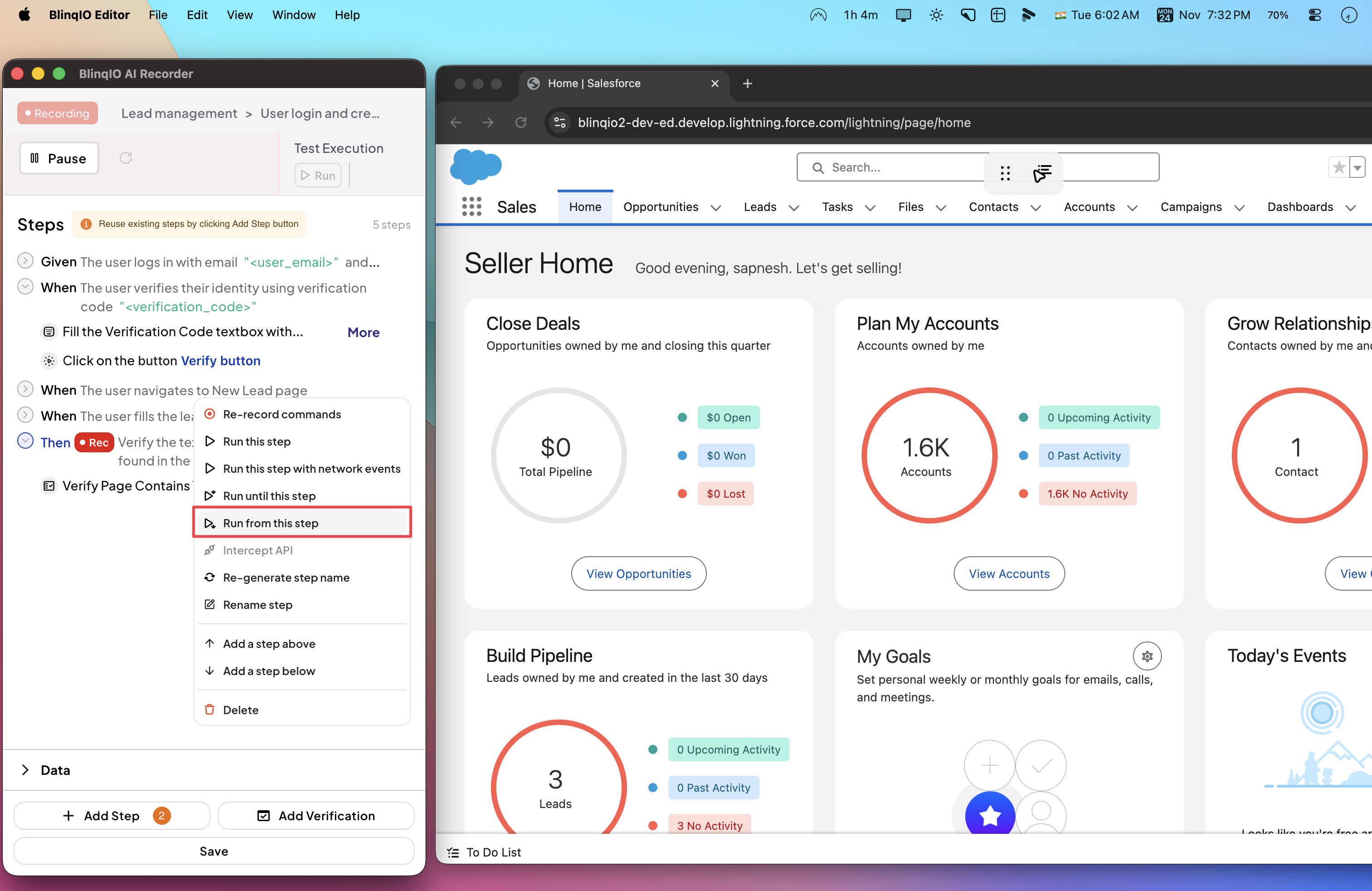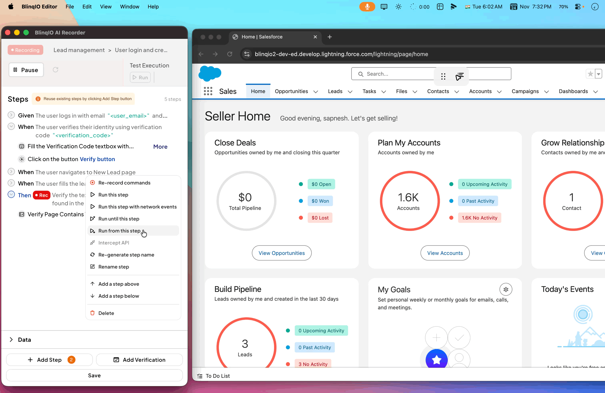 When recording a new test, we recommend running the recorded steps periodically (every 10 steps) to verify that there are no issues with the test execution. Running the steps in the recorder before finalizing and saving the test ensures that your test executes as expected after saving.