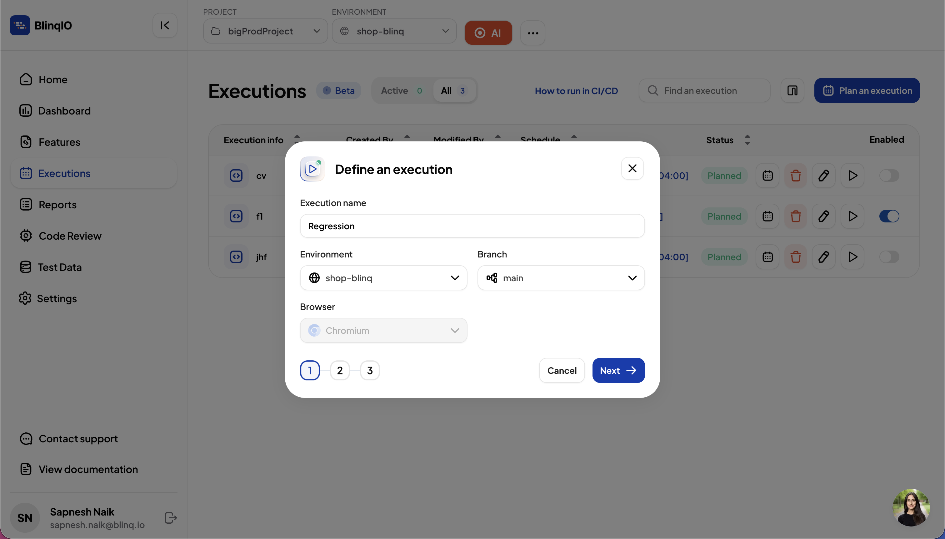 Schedule Executions in BlinqIO Cloud