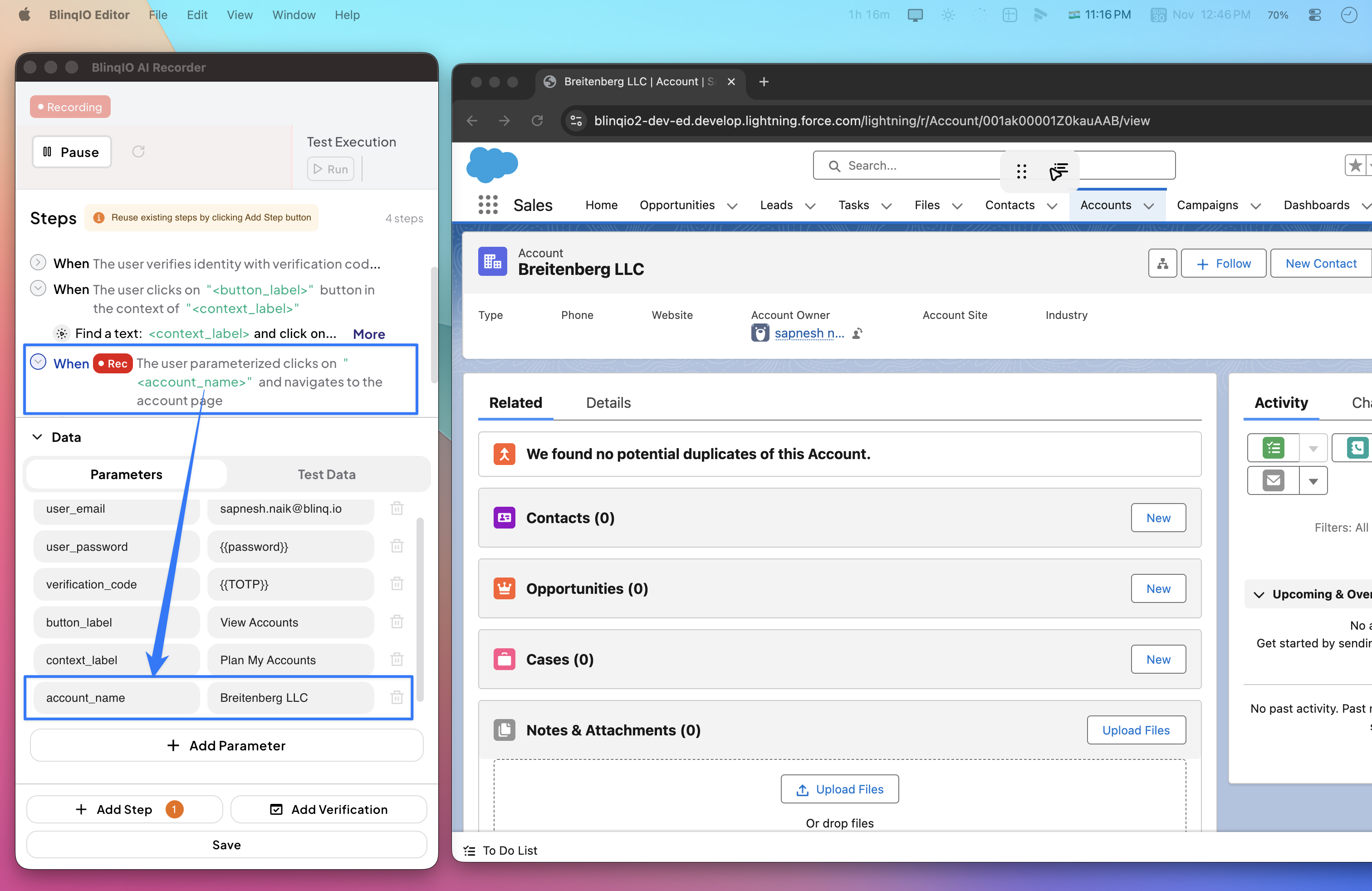 Use parameterized clicks to keep your scenarios flexible. Instead of recording multiple steps, change a single parameter value to test different elements.